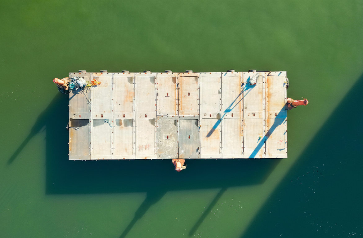 Built Marine supplies sectional (modular) barges for rent across British Columbia. These sectional units are engineered for versatility—easily pinned together in multiple configurations to create floating platforms for marine construction, heavy equipment support, and industrial marine transport.